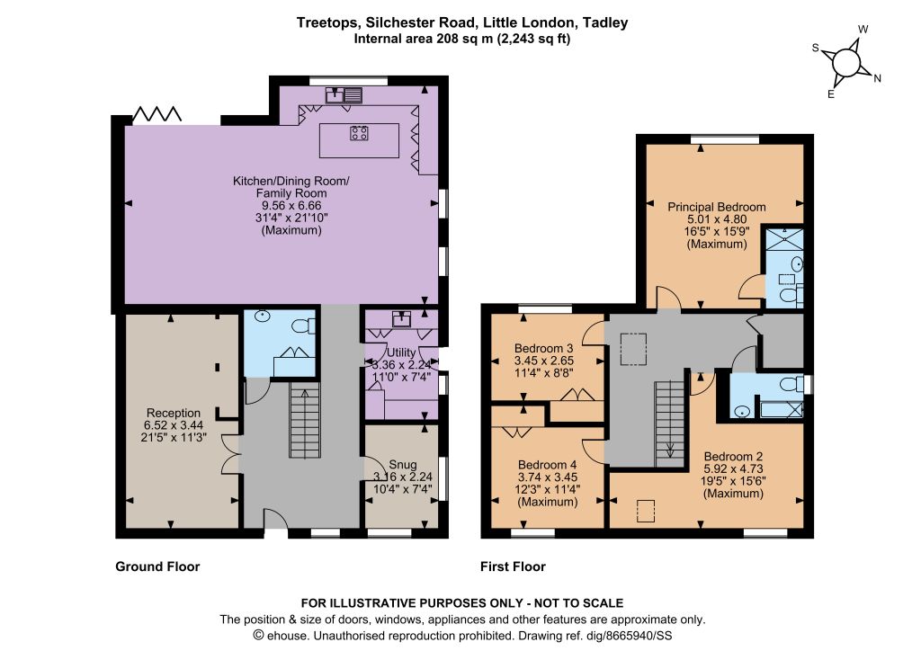 Treetops is a stylishly finished new home offering over 2200 sq ft of modern, light filled accommodation configured to provide an ideal family and entertaining space with attractive neutral décor throughout. The accommodation flows from a welcoming limestone-floored entrance hall to principal rooms with a central staircase to the first floor. Double doors open an impressive 21ft drawing room fitted with a bespoke media unit with LED lighting. The rear aspect kitchen/diner and family room is the focal point of the home and features a contemporary range of painted wooden units with quartz work surfaces, a central island with five-burner hob and dual ovens. Bi-fold doors lead outside seamlessly linking the house and garden and offering views of open fields beyond. The remainder of the ground floor provides a dual aspect study, utility/boot room with ample fitted storage and a generously sized cloakroom. The first floor comprises four comfortable bedrooms centred around a light and open landing; high ceilings feature across the entirety of the upstairs space. The principal bedroom is en suite and along with the family bathroom is finished with Lusso Stone fittings and marble tiles. There are three further double bedrooms, two of which have built in storage.