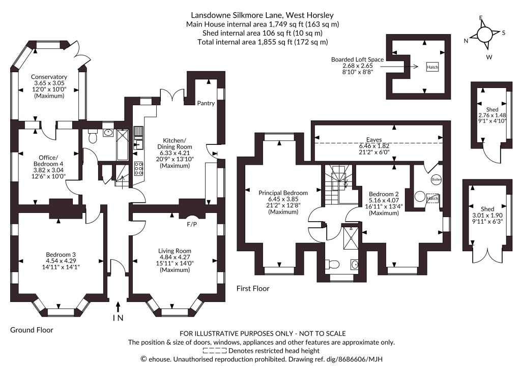 The property lies in a desirable position on Silkmore Lane, in the sought-after Surrey village of West Horsley, surrounded by attractive countryside yet within convenient reach of local amenities. The village offers a range of everyday facilities including a village shop, public house and railway station, while more extensive shopping, leisure and cultural amenities are available in nearby Guildford, approximately six miles to the south-west. Schooling in the area is particularly well regarded, with a number of highly regarded independent schools nearby including Cranmore School, St Teresa’s School, Tormead School, Guildford High School, The Royal Grammar School and Charterhouse. Communications are excellent, with Horsley station providing regular services to London Waterloo, and the A3 offering access to London, the M25 and the wider motorway network.