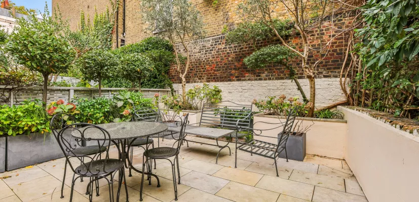 On the ground floor of the house is a large and airy reception room with high ceilings, leading through to a well equiped kitchen and thereafter onto the beautiful private garden. The principal bedroom has air conditioning and a large en-suite bathroom. There are four further bedrooms, three bathrooms a guest cloakroom and a study. Located in the lower ground floor, next to kitchen two is another sitting room.