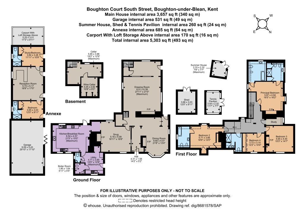 The principal bedroom is double aspect with delightful views and enjoys the luxury of two en suites, one with a bath and the other a shower. The second bedroom has good eaves storage and a bright en suite while the two remaining bedrooms share a shower room. A small study provides a useful additional space.