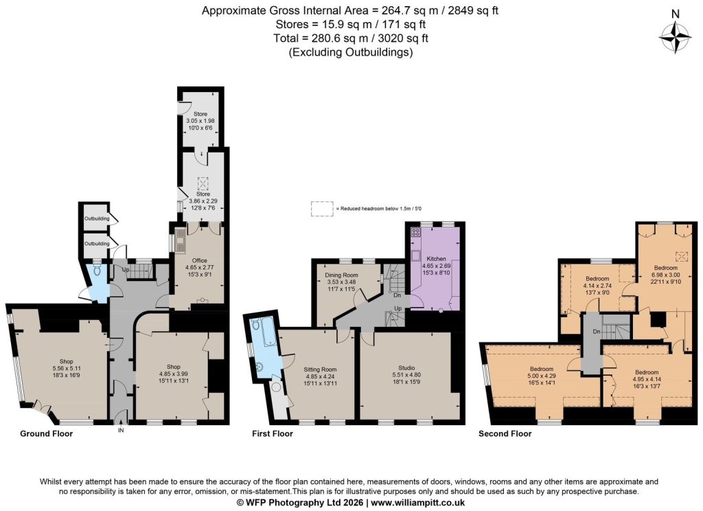 Upstairs is the residential flat with first floor kitchen, dining room, large studio and sitting room and bathroom. On the second floor are four bedrooms. The property is Grade II Listed.