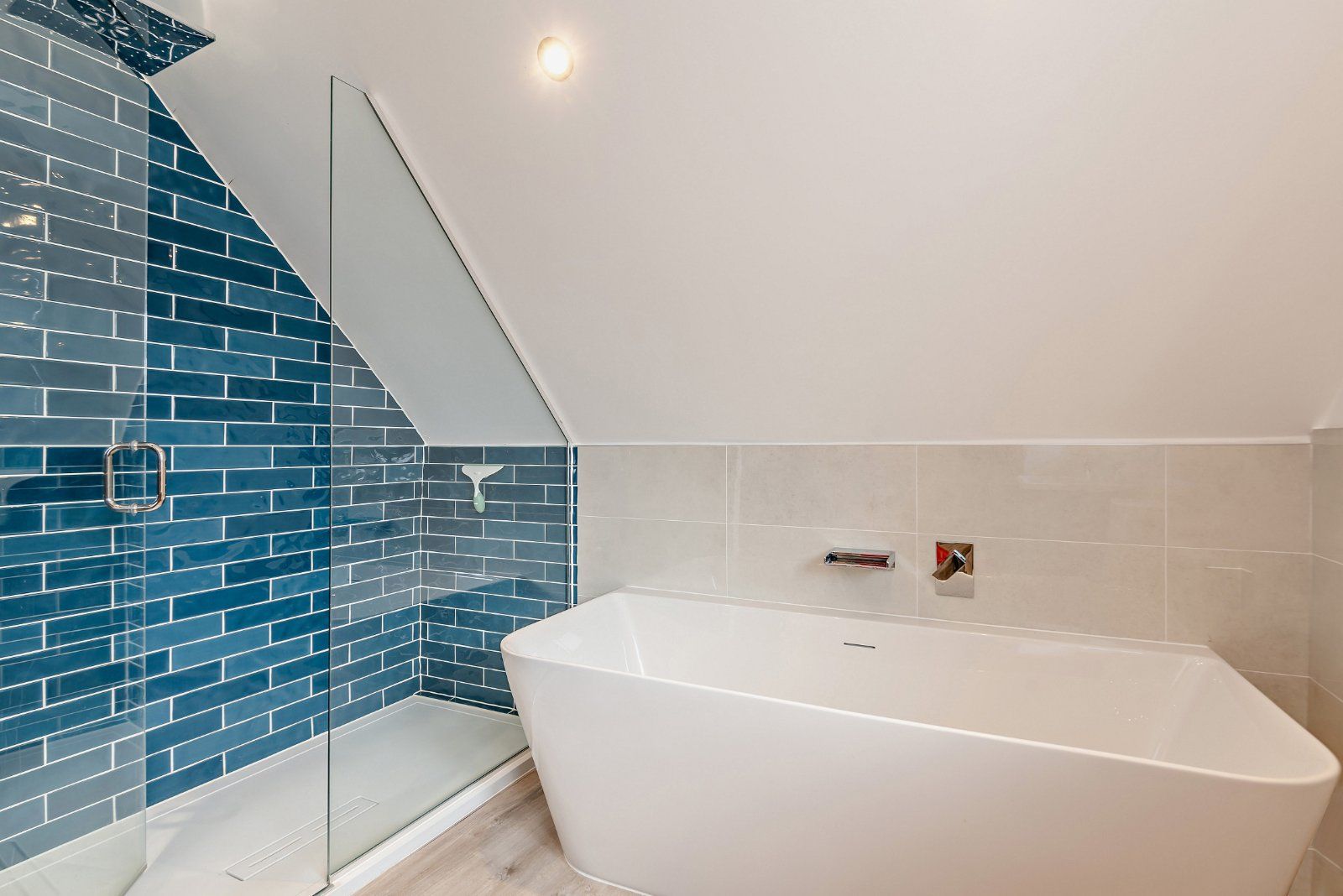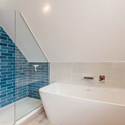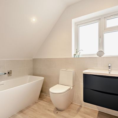 Stairs rise from the reception hall to a generous first floor landing. It gives access to a triple aspect principal bedroom and two further double bedrooms, together with a contemporary part-vaulted family bathroom with bath and separate shower enclosure.
