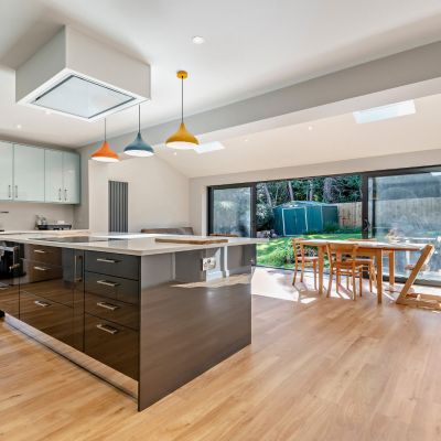 - Open plan kitchen and dining with bi-fold doors into the garden.