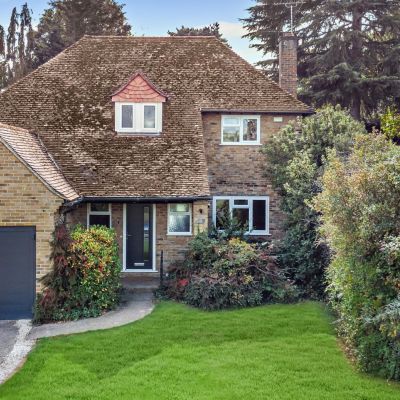 Set behind an area of level lawn bordered by mature shrub beds and having plenty of kerb appeal, the property is approached over a driveway providing private parking and giving access to the integral garage. An adjacent gravelled area provides further private parking and benefits from a pedestrian gate leading to the rear garden. Set against a backdrop of mature trees, the well-maintained enclosed south-east facing garden to the rear is laid mainly to gentlysloping lawn bordered by well-stocked flower and shrub beds. It features a paved terrace accessible from the kitchen/dining room, ideal for entertaining and outdoor dining.