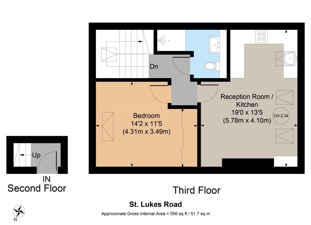 The reception area flows into a open-plan kitchen and enjoys a pleasant southwesterly aspect, allowing for plenty of natural light throughout the afternoon and into the evening. The bedroom is generously sized and benefits from excellent morning light, creating a bright and comfortable space.