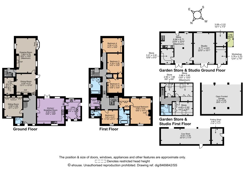 Outbuildings There is a two storey garden store with studio, along with a triple-bay open fronted garage, as well as various garden stores, and an open sided historic livestock building suitable for covered dining.