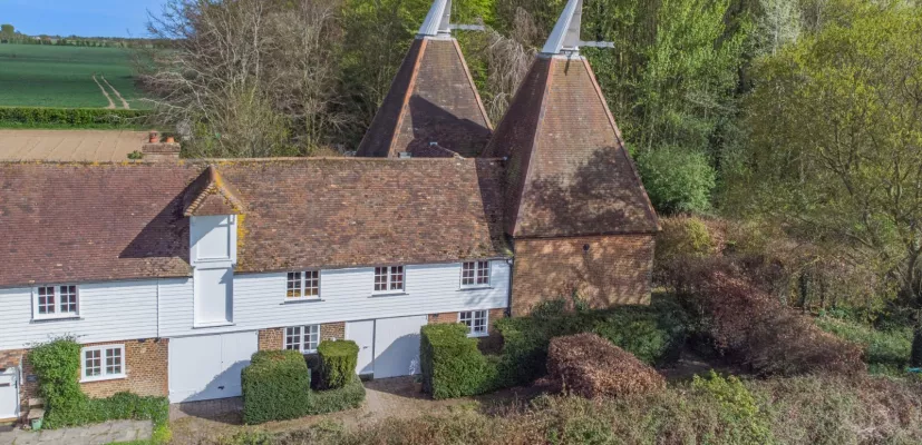 Bright, flexible accommodation occupying part of a picturesque 19th century oast, nestled beside beautiful woodland with superb views across rolling farmland and within reach of a popular village.