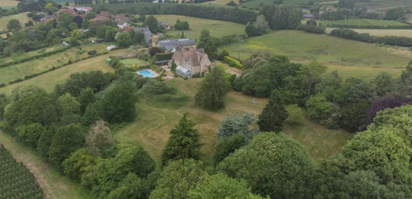 Located in the Kent Downs National Landscape, Mountfield House is situated just outside the picturesque village of Hernhill, nestled within some beautiful rolling countryside with outstanding views over surrounding orchards and farmland. The village itself lies to the east of Faversham and just under seven miles from the cathedral city of Canterbury. The picturesque village green is overlooked by the fifteenth century Church of St Michael and the historic Red Lion pub. The village is also served by another well-regarded pub, The Three Horseshoes and an Ofsted Outstanding primary school. Blean Woods, designated a Site of Special Scientific Interest, are ideal for a peaceful walk.