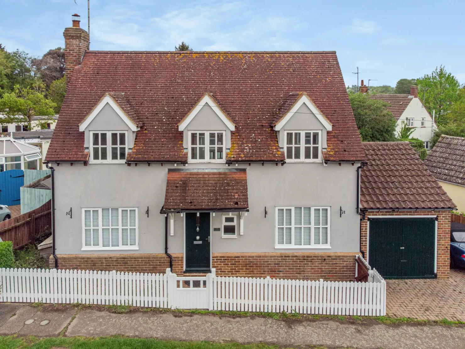 The garden to the rear includes timber decking for al fresco dining, as well as an area of lawn and timber fence borders. Parking is available on a block-paved driveway to the side of the house, while at the front there is an attractive white picket fence and gate, providing access to the house.
