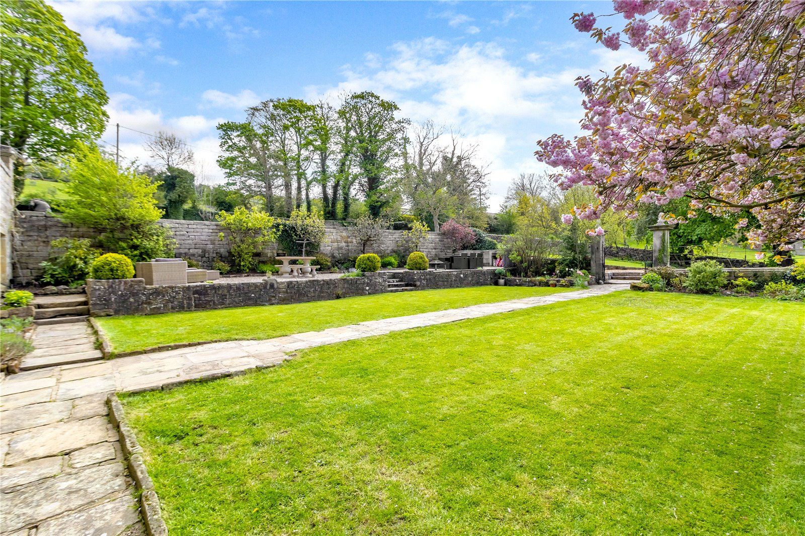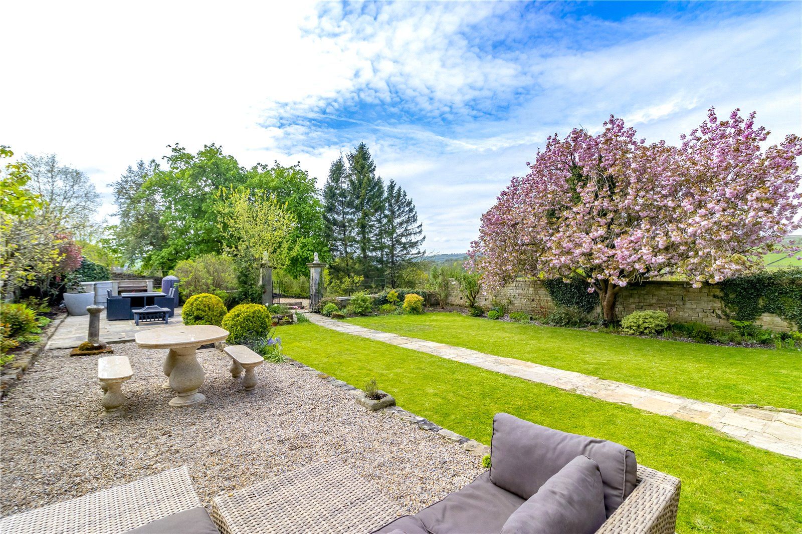 The house itself has a beautiful south-facing walled garden with a sundial and a pristine lawn along with a large area of paved and gravel terracing, for al fresco dining.