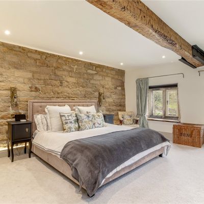 Outside The house is set in approx. 1.5 acres with well stocked formal gardens which lie to the front of the property bordered by a stream to the east. The gravel driveway at the front provides plenty of parking space for residents and guests alike, while there is separate access to a large stone barn and stables. The barn measures approx. 2700 sq. ft, with the stables block including five stables and a large store and workshop, offering the potential to extend the living space further (STP).