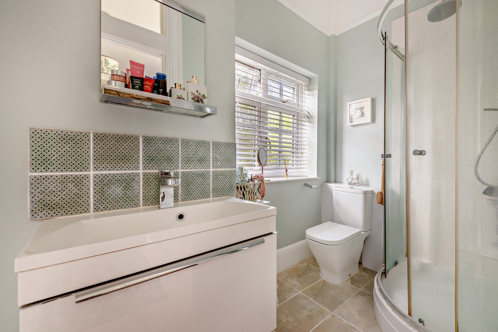 Stairs lead to the first floor where there are three bedrooms and a bright and welcoming landing area. The principal bedroom is spacious with glorious views across the grounds and an adjoining en-suite with a corner shower and useful storage cupboard. Bedroom two resides in the corner of the home so takes in dual aspect views of the grounds, with a useful storage cupboard and high ceilings it shares access to the modern bathroom with bedroom three.
