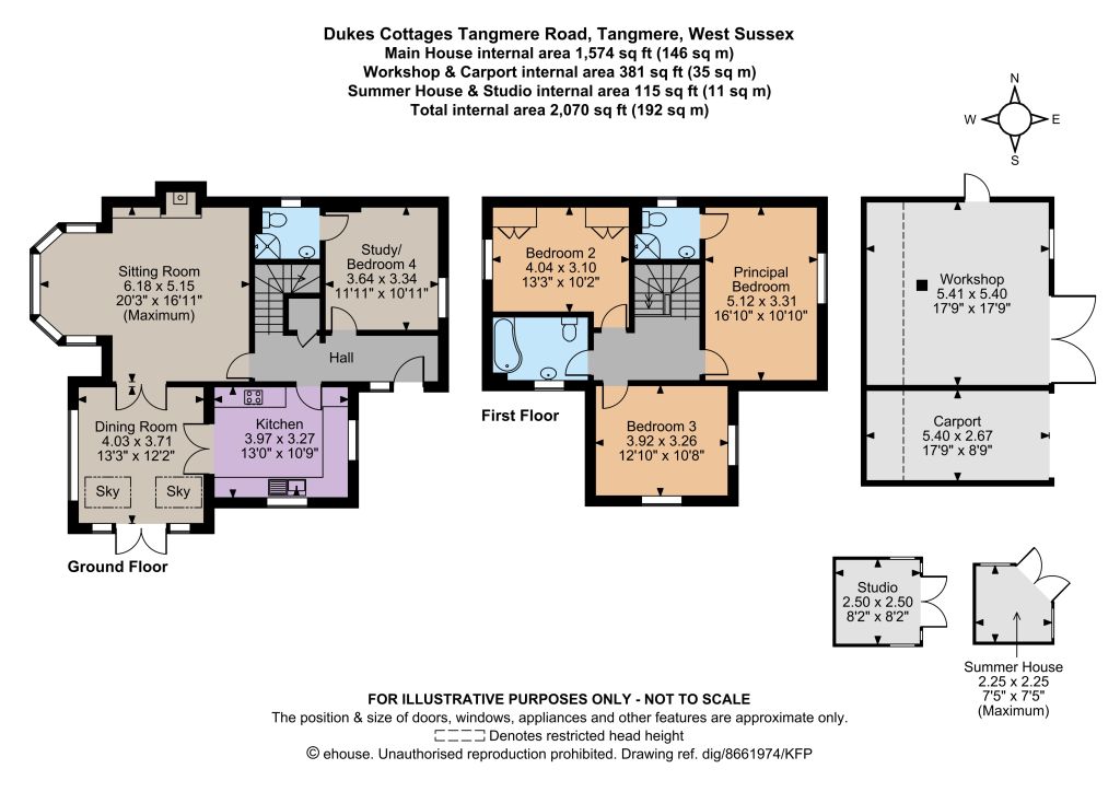 The kitchen is fitted with modern white units to base and wall level, wooden worktops and integrated appliances, which include a double oven, a gas hob and an extractor hood. Leading off the entrance hall the front-facing study/ bedroom with adjoining shower room, provides more flexible work and accommodation space.