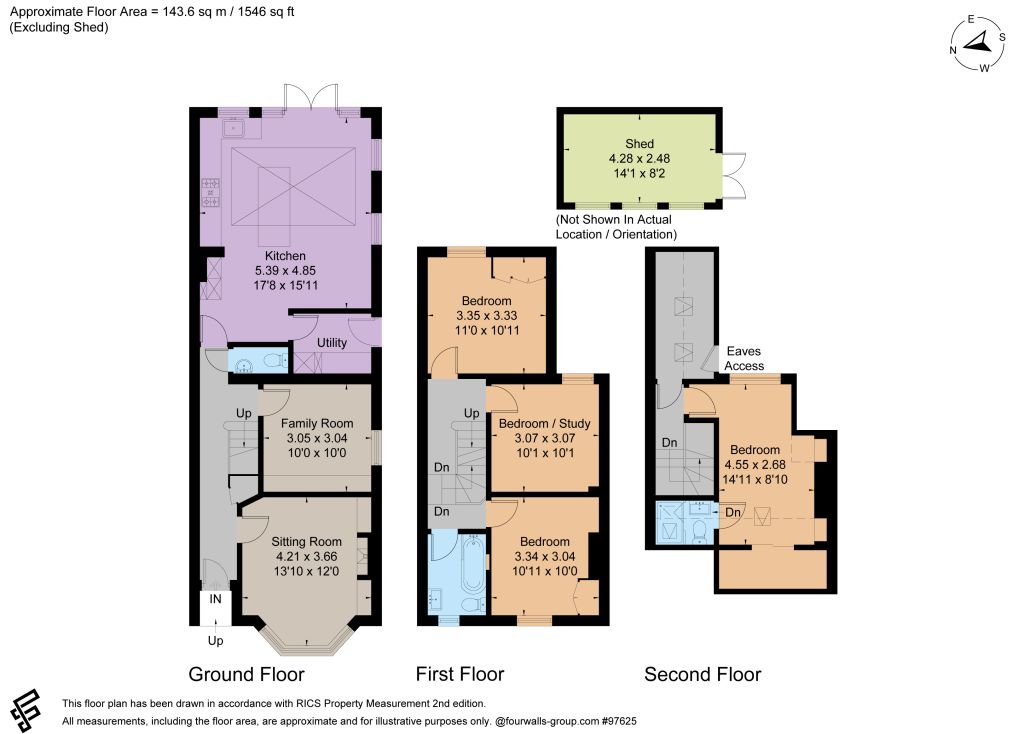 Outside The house is set behind an attractive front garden with on-street parking on the road (permit required, Zone 1). The rear garden is an excellent size, facing east to capture the morning sun, with a sizeable terrace adjoining the house and providing space for alfresco dining. The expansive lawn is enclosed by high hedges and wooden panel fencing for privacy, while a number of mature trees and shrubs provide additional interest. At the end of the garden there is a children’s play area and a storage shed.