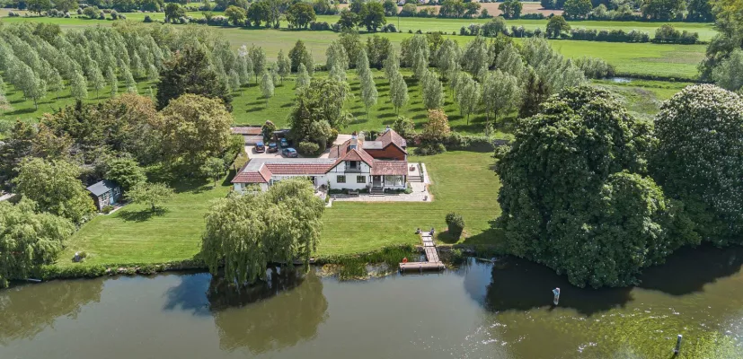 A fabulous riverside home offering flexible accommodation set within picturesque and peaceful grounds of 1.35 acres enjoying unique views onto the Thames with a mooring and boathouse