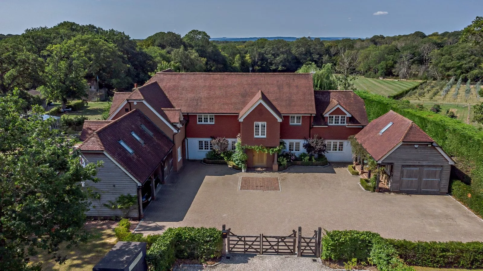 A substantial detached house with a wealth of beautifully appointed accommodation, set in a peaceful and sought-after village position six miles from Horsham. The property features airy, flexible living space with elegant yet understated décor throughout, while outside there are stunning south-facing gardens with a paddock and woodland beyond.