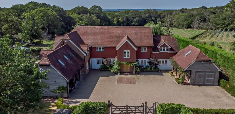 Hurlands is an impressive detached country house offering seven bedrooms, five reception rooms and a range of barns, stables and outbuildings, all set within far-reaching grounds amid the picturesque West Sussex countryside.