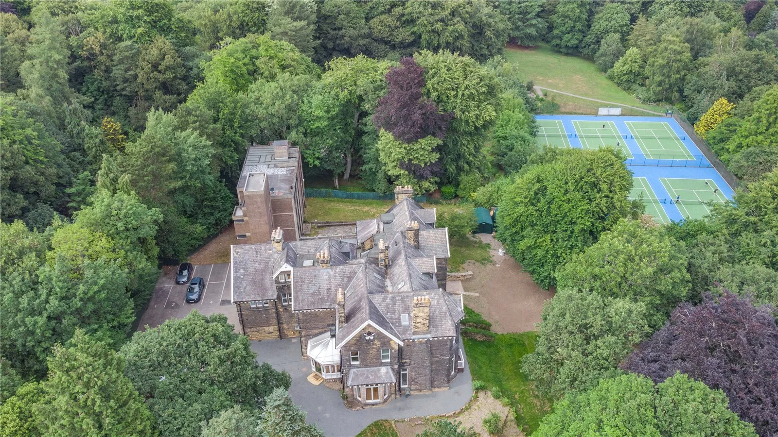 Outside Set in a peaceful and sought-after north Leeds setting, the apartment is set in beautiful communal gardens, which are surrounded by woodland and back onto the open parkland of The Hollies. There is plenty of parking in front of the house, while at the side and rear there are area of terracing with rolling lawns beyond.