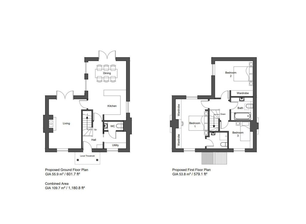 Plot 2 A traditional cottage style home of about 1180 square feet (GIA) offering accommodation over two floors consisting of kitchen/dining room, sitting room, utility room, three bedrooms, en suite to principal bedroom, family bathroom and double width garage/car barn.