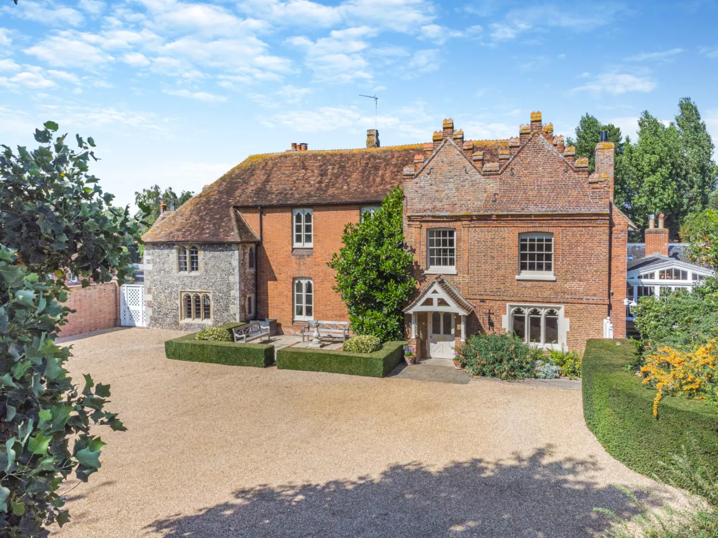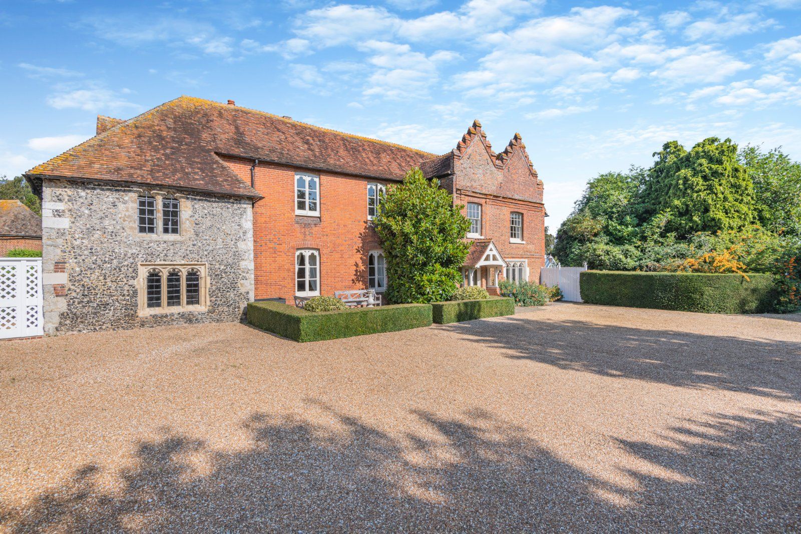 The Old Rectory is a unique Grade II* listed village house forming the major part of the former vicarage. Set in beautiful grounds, it combines modern convenience with rich history. The fine exterior displays the development of the house, from the flint façade of the original 13th century portion, to the striking stone-mullioned windows and crow-stepped gabling of the 18th and 19th century main sections. It also enjoys two annexes or cottages that are currently let.