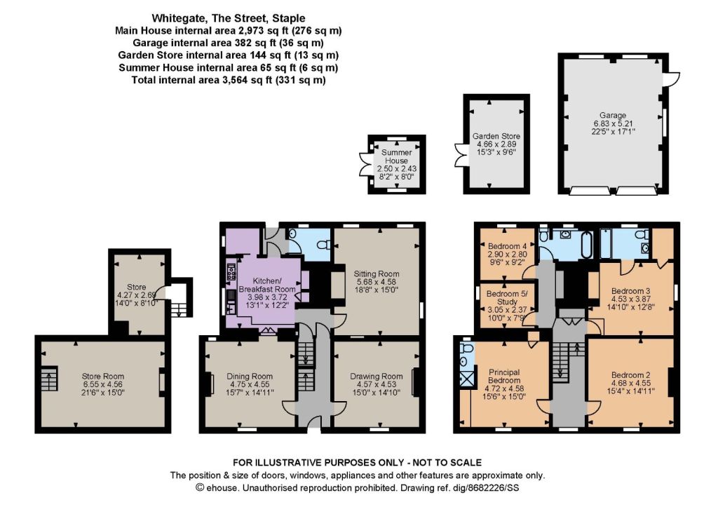 Additionally, there is a garden store and a summer house. External steps lead down to a second cellar used as a store room.