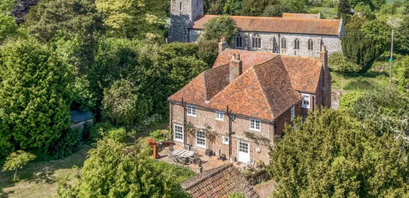 Whitegate is a handsome family home set in a highly accessible semi-rural village, with good access to Canterbury and the coast. Large sash windows along the front facade take in fascinating views of the medieval church opposite, imbuing a great sense of peace and calm to the rooms. The rooms at the rear look over the quintessential Kentish garden and fields beyond.