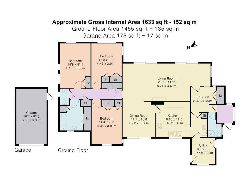 The accommodation is light-filled and inviting. Upon entering, a welcoming porch leads into the main hallway, which includes a large storage cupboard and access to a convenient shower room/cloakroom. The generously sized living room features a coal-effect gas fire and double patio doors that open into the garden. This room seamlessly flows into the adjoining dining room, which also has patio doors opening out to the garden, creating an ideal space for entertaining. The kitchen is fitted with a comprehensive range of wall and base units, complemented by integrated appliances and ample work surfaces. There is also a separate utility room with access to a large rear porch, which leads directly to the garden.