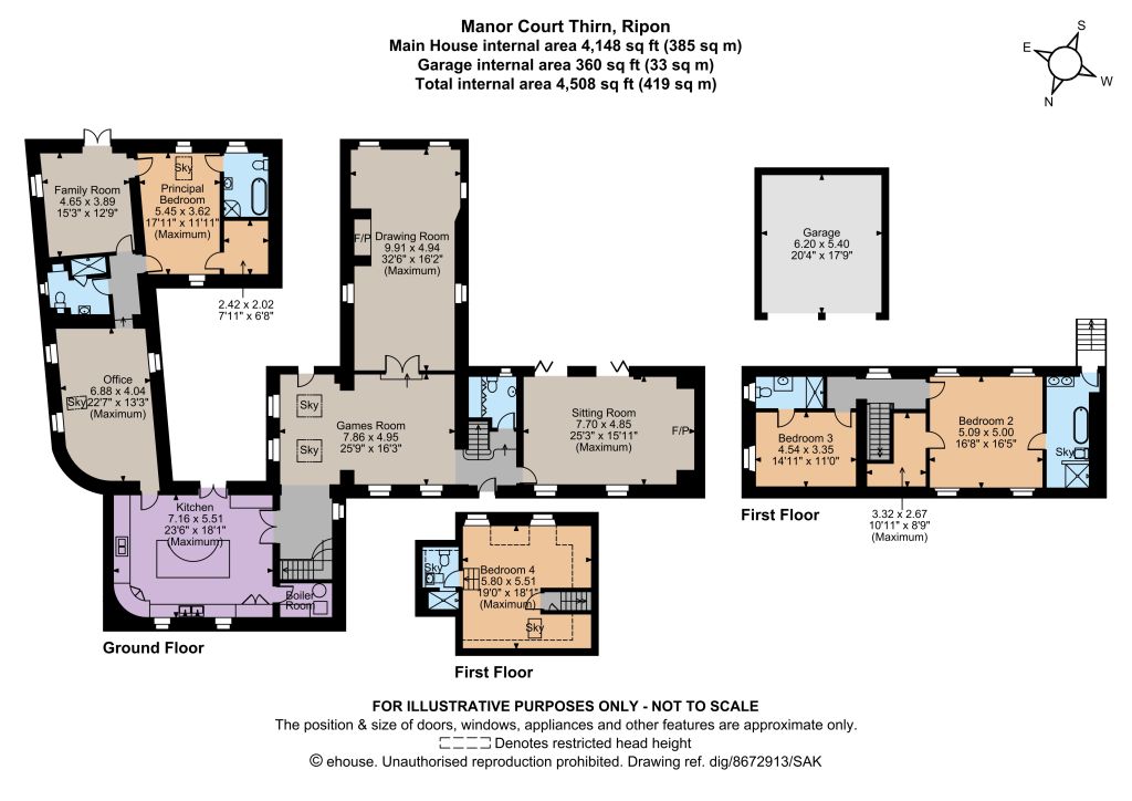 Manor Court is a grand detached farmhouse with more than 4,000 square feet of beautifully appointed accommodation and extensive gardens. Set in the hamlet of Thirn within easy reach of Masham and Bedale, the property was converted from existing barns in 1993 and has undergone a program of renovations throughout by the current owners. The property has also been extended to provide four bedrooms and five flexible reception rooms, with period details including exposed timber beams, stone floors, stone-built fireplaces, alongside stylish modern fittings and décor.