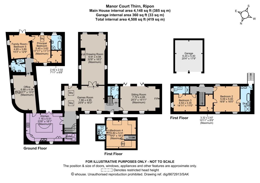 The Property Manor Court is a grand detached farmhouse with more than 4,000 square feet of beautifully appointed accommodation and extensive gardens. Set in the hamlet of Thirn within easy reach of Masham and Bedale, the property was converted from existing barns in 1993 and has undergone a program of renovations throughout by the current owners. The property has also been extended to provide four/five bedrooms and four/five flexible reception rooms, with period details including exposed timber beams, stone floors, stone-built fireplaces, alongside stylish modern fittings and décor.