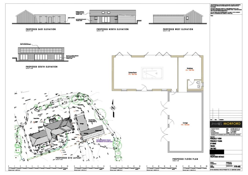 Planning Permission Planning Permission is granted (PA23/04786) for an extension to the existing garage/workshop, which would create a brilliant new detached games room, garaging and workshop. The extension is designed to complement the main house, with a natural slate roof covering, Oak cladding and full height doors. The south facing roof lends itself perfectly to incorporate solar PV panels which will feed batteries, in turn helping reduce the overall carbon footprint of the property. Our client informs us that building regulations and infrastructure for services are already complete, allowing the new owner to commence work quickly if they wish.
