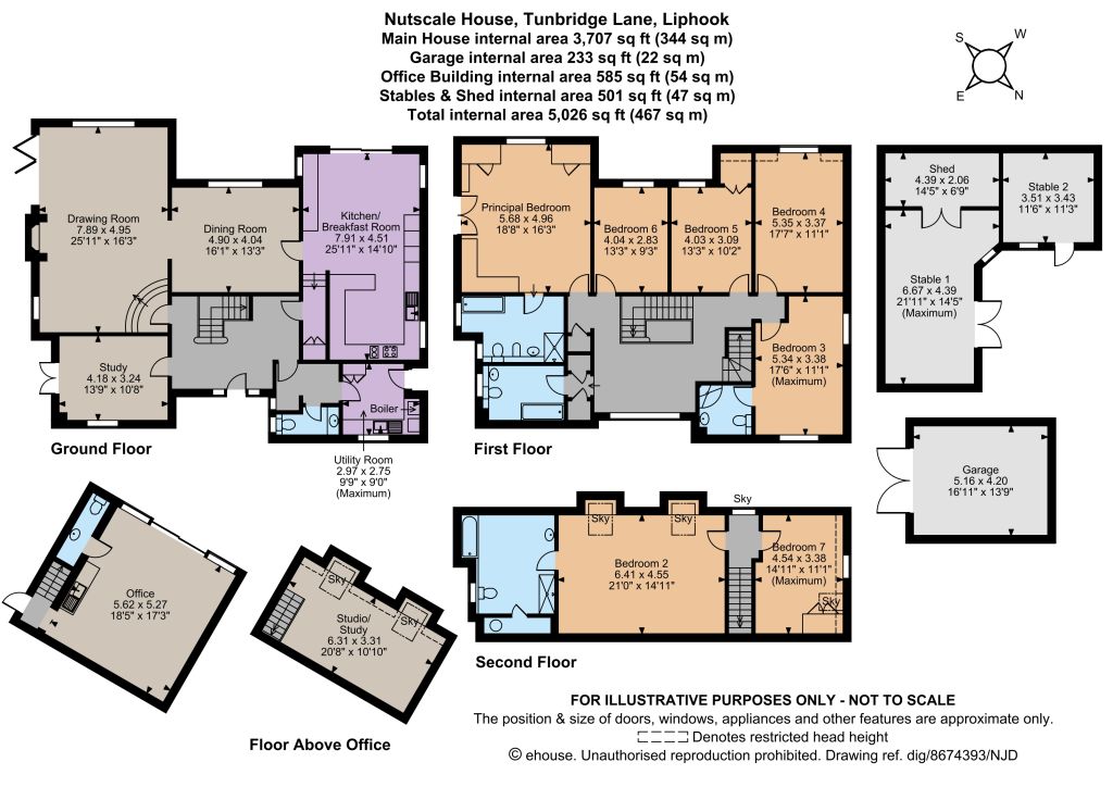 The property is accessed via an electric 5-bar gate and driveway leading to a parking area at the front of the house, as well as to the side, where there is an additional covered parking area with EV charging point, and access to the detached garage/workshop. The spacious, detached, home office/annexe has underfloor heating to the ground floor and includes a kitchenette and separate shower room, with stairs giving access to the first floor, currently used as a guest bedroom.