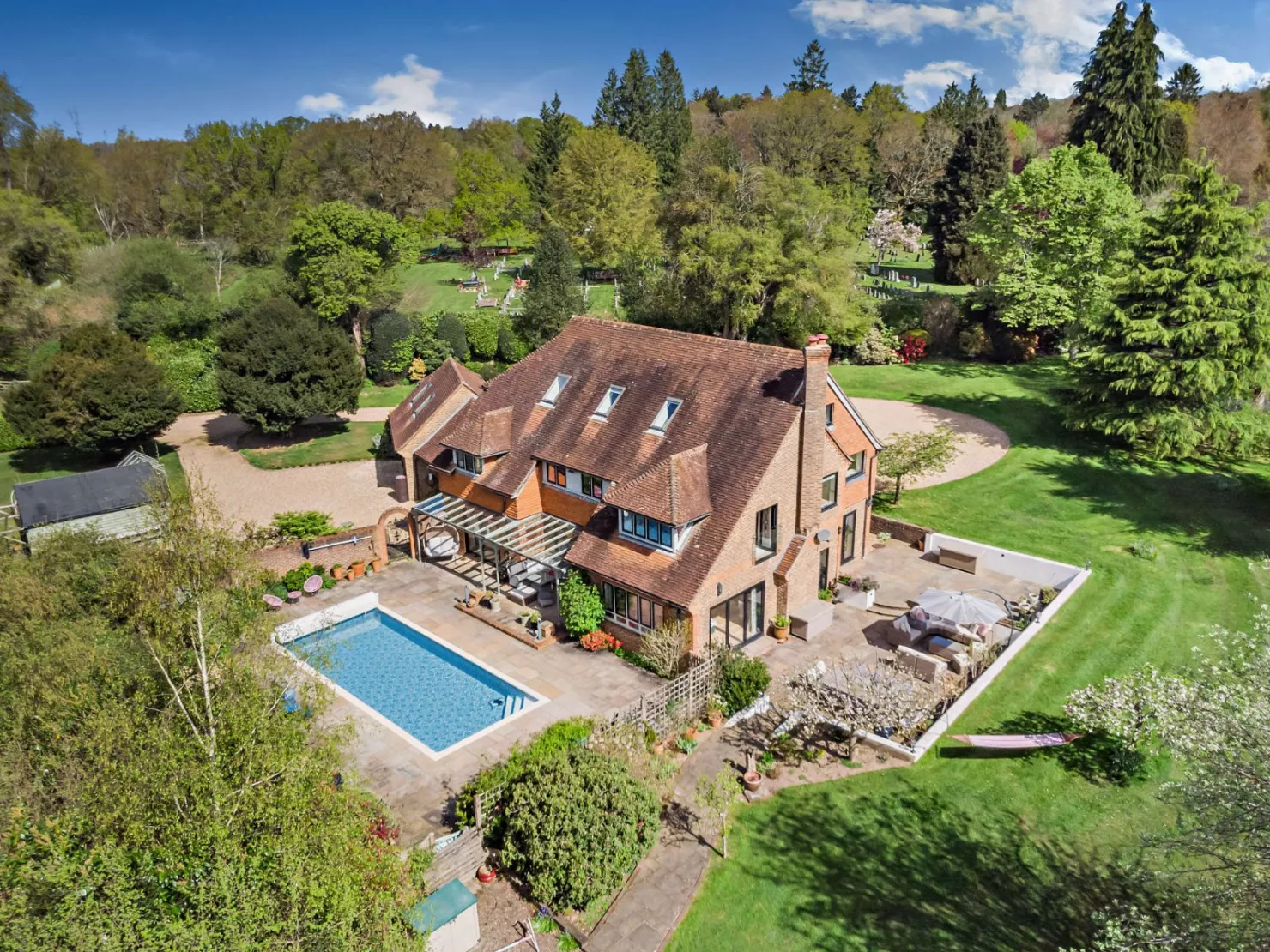 A substantial detached home, with home office/annexe, outbuildings and pool, set in nearly 3 acres