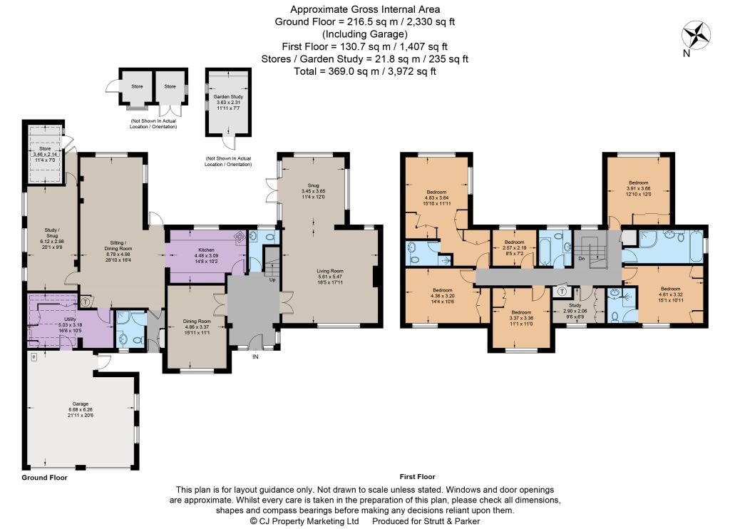 Upon entering the property, the large welcoming reception hallway leads to several of the ground floor rooms, including the principal reception room, dining room, study, utility room, downstairs cloakroom, additional shower room and kitchen. The kitchen is comprehensively fitted with a range of base and eye level units along with built in appliances and opens onto a large family room / breakfast room.