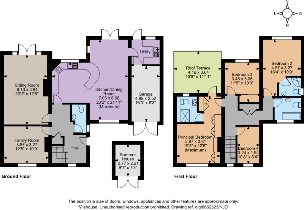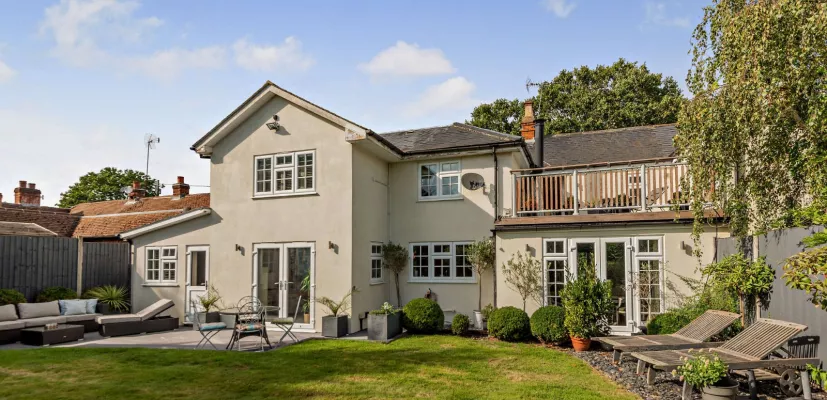 Having plenty of kerb appeal, the property is approached from the pavement over a low maintenance block-paved forecourt spanning the full width of the property. It provides private parking for multiple vehicles and gives access to the integral garage. The well-maintained enclosed garden to the rear is south-facing. It is laid mainly to level lawn bordered by well stocked flower and shrub beds and features a vaulted timber summer house with French doors to a covered decked terrace, currently used as an office, together with a generous decked terrace accessible from the kitchen/dining and utility rooms, ideal for entertaining and al fresco dining. All in all, these elements create an immersive and restorative outdoor sanctuary.
