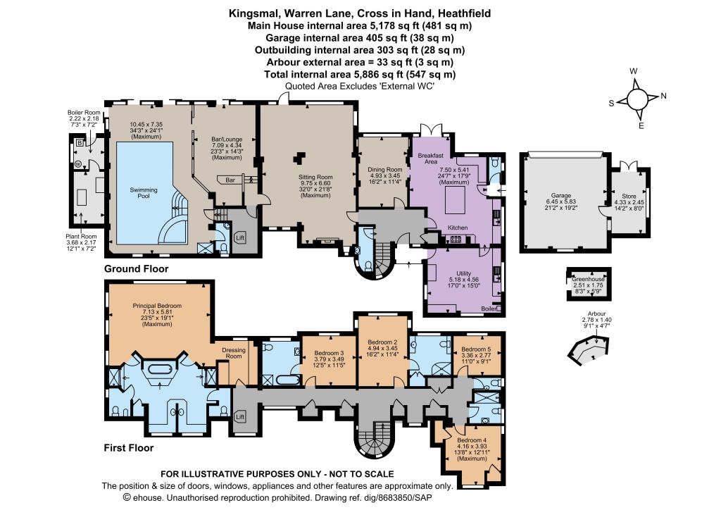 Kingsmal is located on Warren Lane in the rural village of Cross in Hand, close to the town of Heathfield in East Sussex. The village provides everyday amenities including a convenience store, petrol station, and the Cross in Hand Inn, while more extensive shopping, leisure, and schooling options can be found in Heathfield, approximately two miles away. Transport connections are excellent: the A267 offers direct access to Royal Tunbridge Wells, linking to major routes including the A22 towards Eastbourne. The nearest railway station is at Buxted, approximately six miles away, with regular services to London Bridge in about 75 minutes. The surrounding High Weald Area of Outstanding Natural Beauty provides extensive countryside walks, cycling routes, and recreational opportunities, including the popular Cuckoo Trail, making Kingsmal an ideal location for those seeking both rural charm and accessibility.