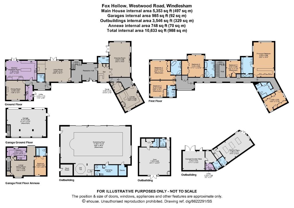 Positioned to the rear of the plot is a home office/games room with a kitchenett and cloakroom, and an adjoining garden/machine store with cloakroom and utility room.