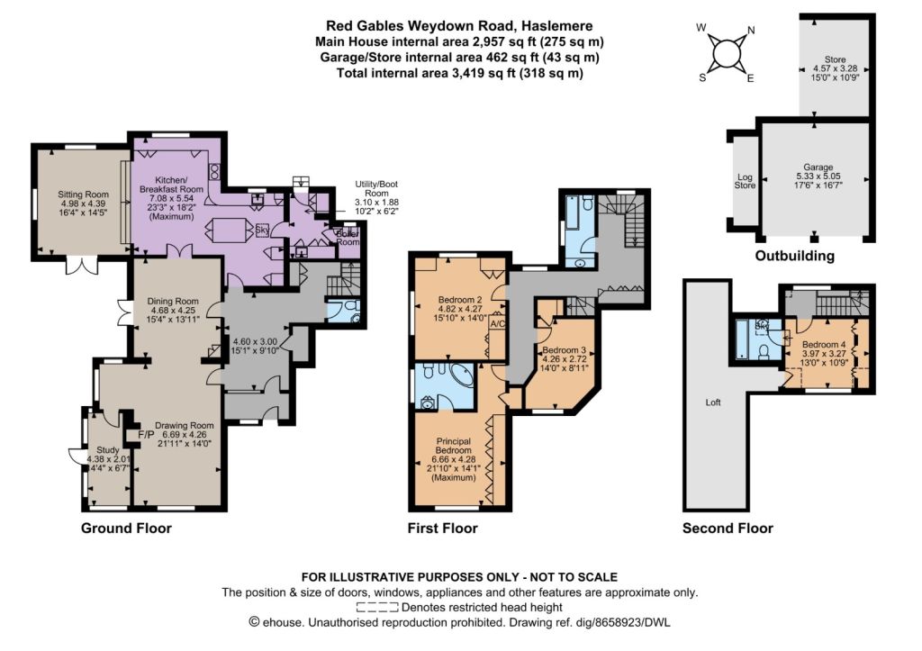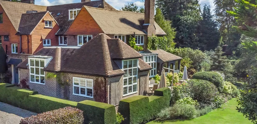 From Haslemere head northwest on High Street/A286 toward College Hill and take a slight right onto Lower Street/B2131. After 0.6 miles turn right onto Weydown Road and then a further 0.3 miles you will find Red Gables on the right hand side, through some wooden gates. what3words: ///pretty.needed.chill - brings you to the driveway