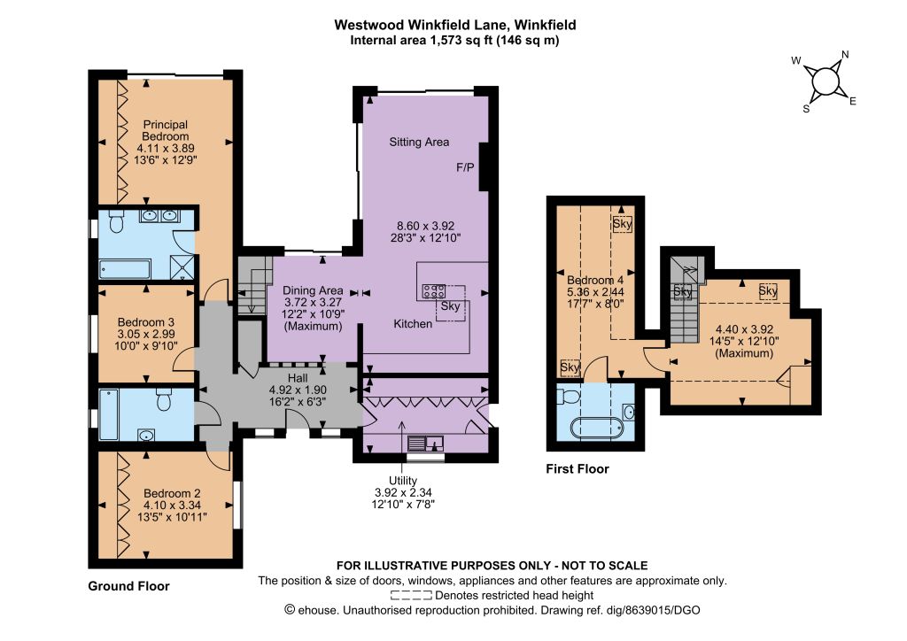 Ascot Estate & Letting AgentsSunningdale Estate AgentsWindsor Estate AgentsWestwood is a unique village home, built by a renowned local developer, incorporating historic building materials. This stylish detached home offers in excess of 1 500 sq. ft of light-filled accommodation arranged over two floors. The hub of the house is the 28ft kitchen/sitting room and connecting dining room. This open-plan area features, tiled flooring, a contemporary fireplace in the seating area, a vaulted ceiling with skylights overhead, and three sets of triple sliding glass doors that open out to the rear patio and garden, thereby extending the entertaining and relaxation space. The kitchen area itself is fitted with sleek, modern units and integrated appliances, including dual ovens, an induction hob and a recessed extractor. The dining rooms enjoys a sense of light and space, courtesy of exposed vertical beams in place of a sold wall that creating a division from the reception hall, off which is a useful utility room with its own outside access.