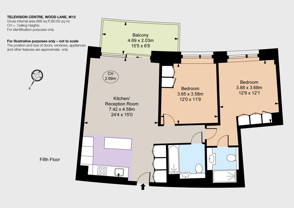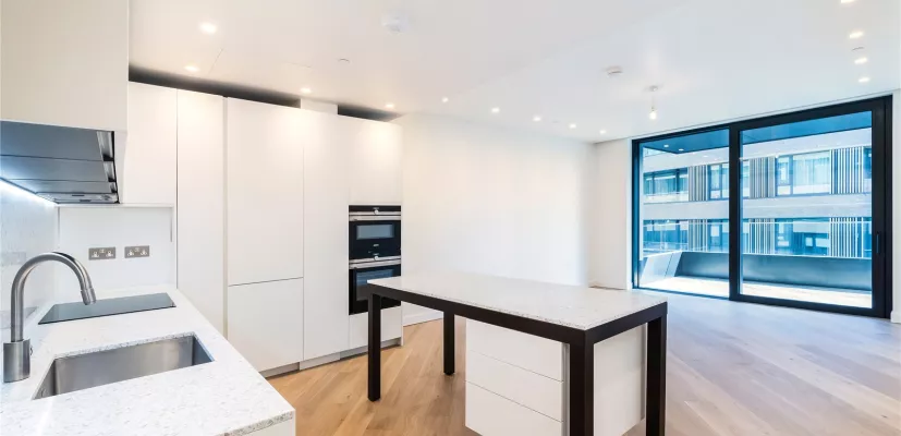 An exceptionally spacious two bedroom flat that offers an open-plan reception room, sleek modern kitchen, two bathrooms, good sized bedrooms with fitted wardrobes and a balcony overlooking landscaped gardens.