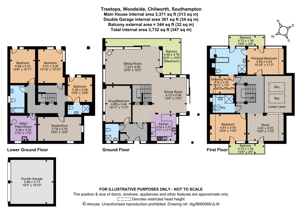 The lower ground floor currently comprises 2 equal sized double bedrooms with access out onto the lower terrace. A further bedroom with en suite shower room can be found on this level, along with a family bathroom, a utility/plant room and a studio/gym.