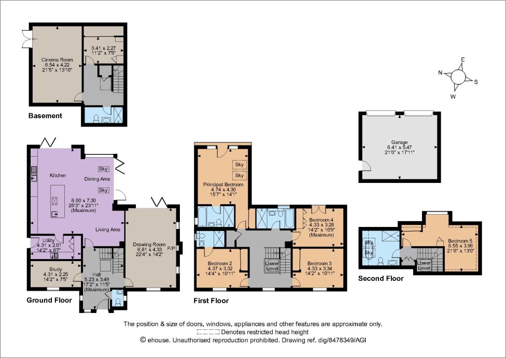 - 4 further bedrooms, 4 further bath/shower rooms (one en-suite)