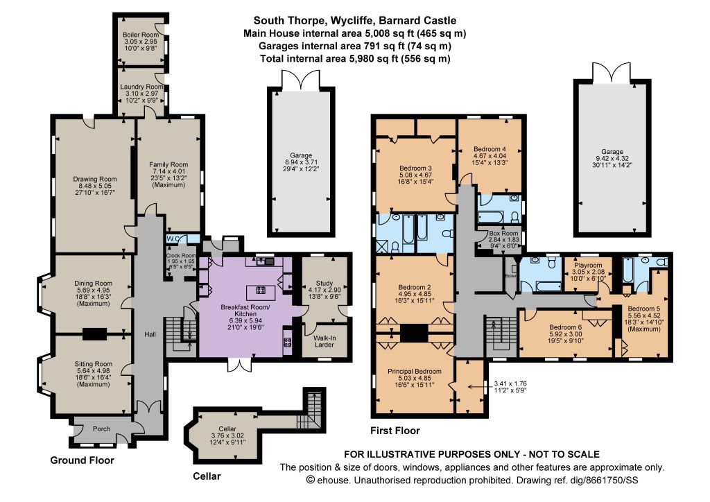 - Total internal area 5,980 sq ft (556 sq m)