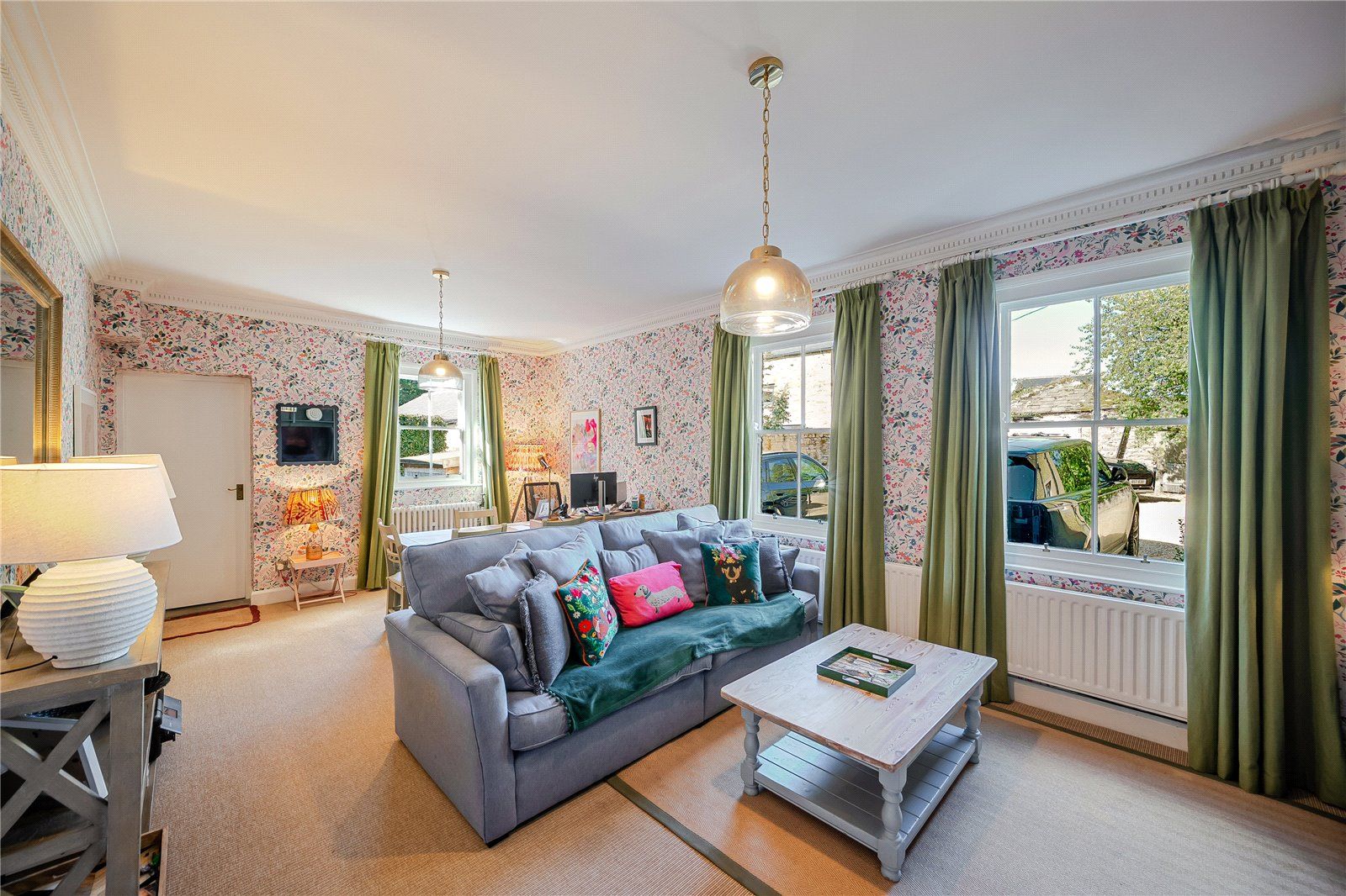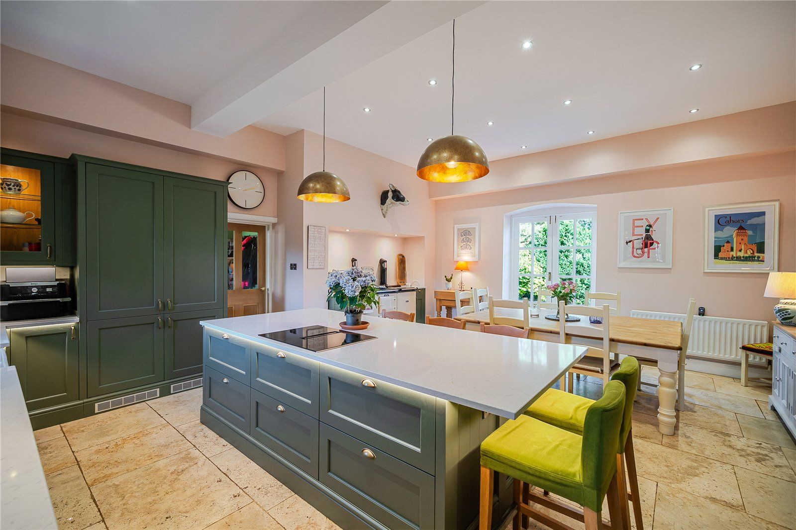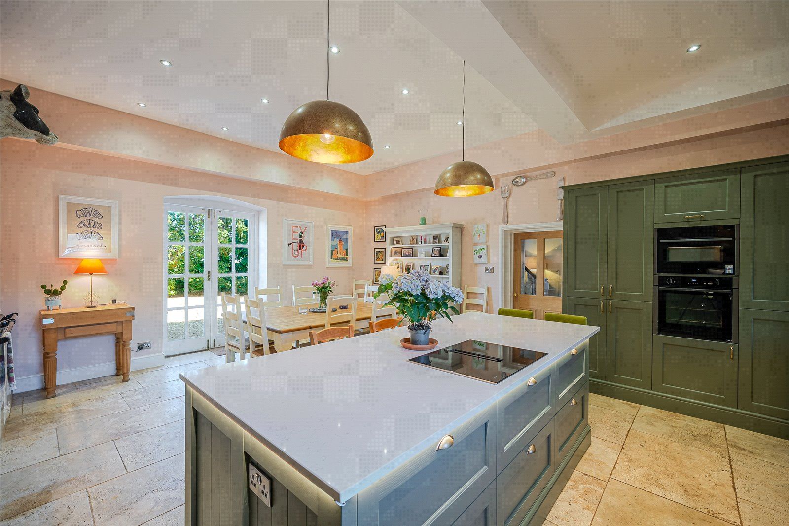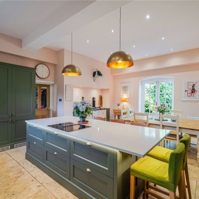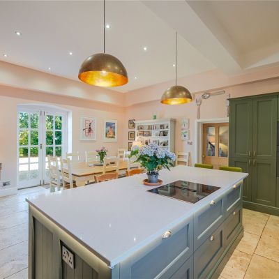 The main access is via a porch that connects to an inner hall with original mosaic floor tiles and into the welcoming reception hall, which leads to the main ground-floor reception rooms. These include the comfortable sitting room with bay window and window seat to enjoy the southerly views over the gardens. The adjacent dining room is of equal proportion providing ample space for a good-sized dining table and chairs, it is the perfect space for hosting dinner parties and for a more formal dining setting. The impressive 27ft drawing room is an ideal room to relax and unwind in or withdraw after dinner and entertain whilst being bathed in the warm southerly light from the three large sash windows. Additional space in which to relax comes in the form of the family room, which has bespoke fitted cabinetry and offers space for both a seating area and a dining table.