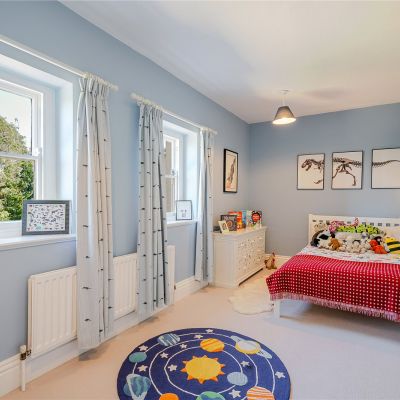 Upstairs there are six well-presented double bedrooms, plus a playroom, which could be used as a dressing room or a nursery. The principal bedroom benefits from a large walk-in wardrobe, while four bedrooms feature traditional styled en suite bathrooms, three of which also have extensive fitted storage. The galleried first floor landing also leads to the family bathroom with its over-bath shower.